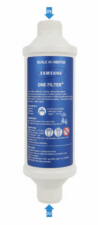 فیلتر تخصصی سامسونگ برای جلوگیری از رسوبگذاری آب در ماشینهای لباسشویی و ظرفشویی، طراحی شده تا با جذب املاح مضر آب، از تشکیل جرم و آسیب به قطعات داخلی جلوگیری کند.